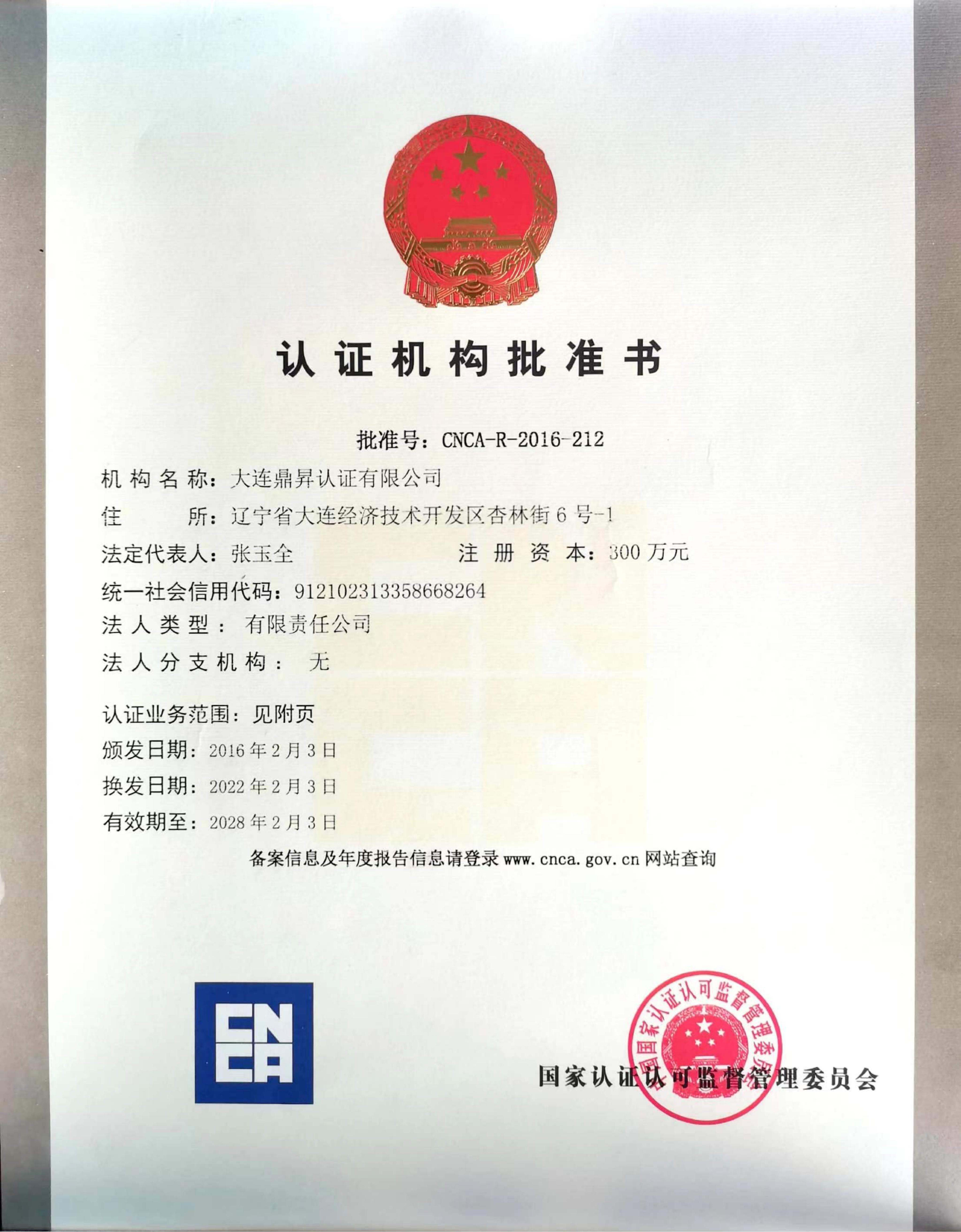 認證機構批準書-鼎昇認證